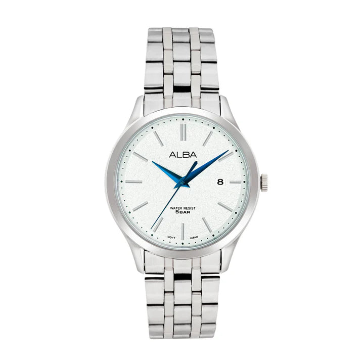 Alba AS9R35X1 White Marble Dial with Silver Metal Straps